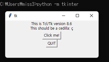 cmd에서 python -m tkinter로 확인 가능하다.