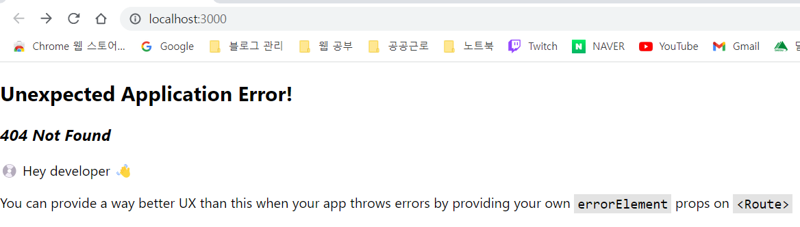 기존 루트 경로에는 error 페이지가 뜨고 http://localhost:3000/app으로 접속을 해야 App 화면이 나타납니다.