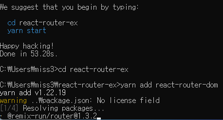 react 프로젝트 설치가 완료되면 react-router-dom을 설치합니다.