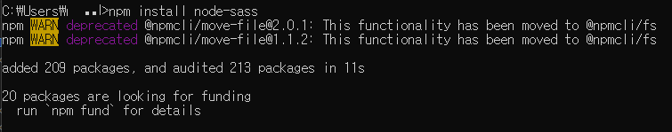 일단 작성에 앞서 node-sass를 설치해줍니다.